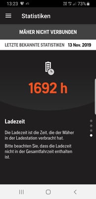 Beim Automower-Connect wurde neu der Menüpunkt "Statistiken" hinzugefügt, nun lassen Sie sich überraschen welche Schwerstarbeiten ein Mähroboter erledigen kann, zB. der Automower 450X der Modellfluggruppe Bätterkinden innert 2 Mähsaison.